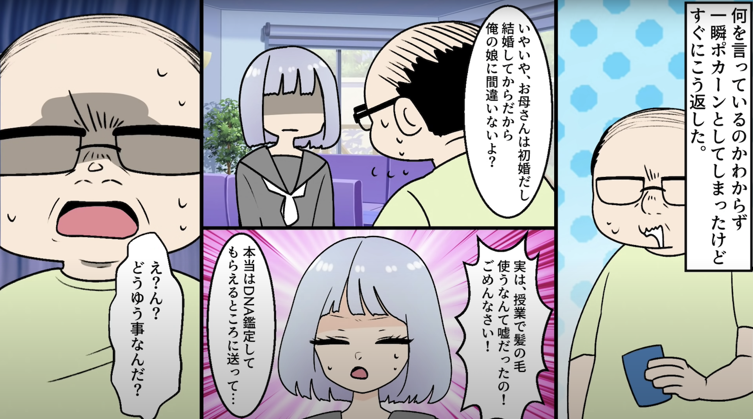 冷たすぎる美人妻と不可解な行動を取る娘【3】 2022年11月03日 13:00 そんなギクシャクしていた時にある事件が起きた...。娘「私ってお父さんの本当の子じゃないの?」このお話を始めから読む↓ 前回のお話はこちら↓ 以前に授業で使うと言って抜いていった毛髪をDNA鑑定に送っていたというのだ...。▶︎読者登録して最新話を最速で読む!▶︎Twitterをフォローして更新を最速で通知!次回へ続く・・・ 完結済みのお話はこちらです 「スカッとする話」カテゴリの最新記事 タグ :#衝撃的な体験#スカッとする話#漫画#マンガ#浮気#不倫#火事 < 前の記事次の記事 > コメント コメントフォーム 名前 コメント 記事の評価 リセット リセット 顔 星 情報を記憶 コメントを投稿する