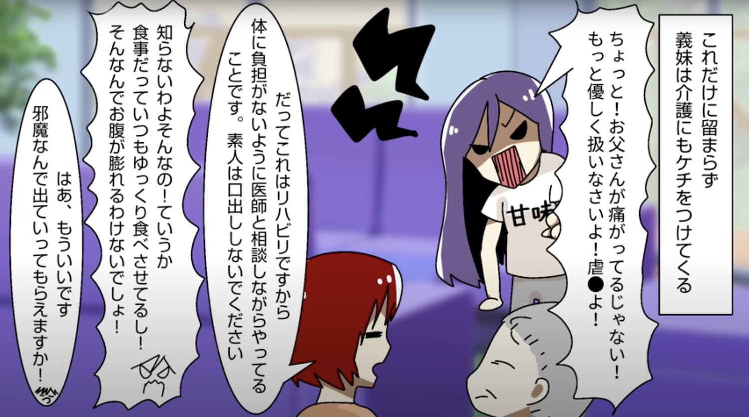義父の介護を任された私に嫌がらせ行為をしてくるコトメ【3】 2022年11月06日 12:00 家事などへの口出しだけでなく、義妹は介護にもケチをつけてくる。リハビリをしている時に「虐待」などと言ってきたり何かとイチャモンをつけてくるのだ...。このお話を始めから読む↓ 前回のお話はこちら↓ 我慢の限界に達しそうな私がいつかガッツリ言い返してやろうと思っている最中、事件が起きた...。▶︎読者登録して最新話を最速で読む!▶︎Twitterをフォローして更新を最速で通知!次回へ続く・・・ 完結済みのお話はこちらです 「鬱陶しい身内の話」カテゴリの最新記事 タグ :#スカッとする話#鬱陶しい身内の話#義妹#義母#義父#介護 < 前の記事次の記事 > コメント コメントフォーム 名前 コメント 記事の評価 リセット リセット 顔 星 情報を記憶 コメントを投稿する
