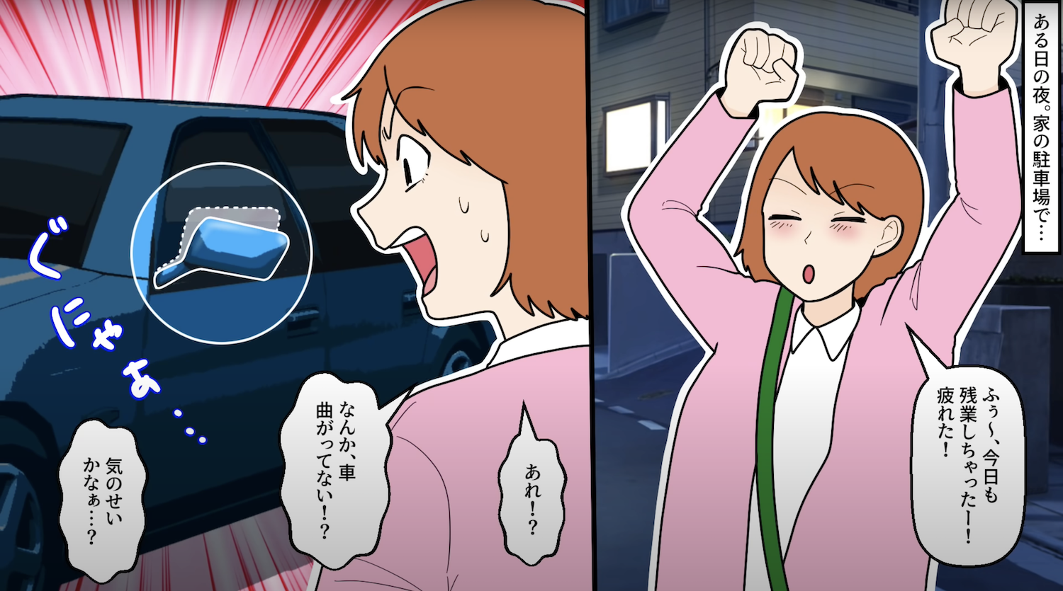 休日は夫婦でドライブを堪能していたがある日、車に身に覚えのない傷がついていたことに気がついた。