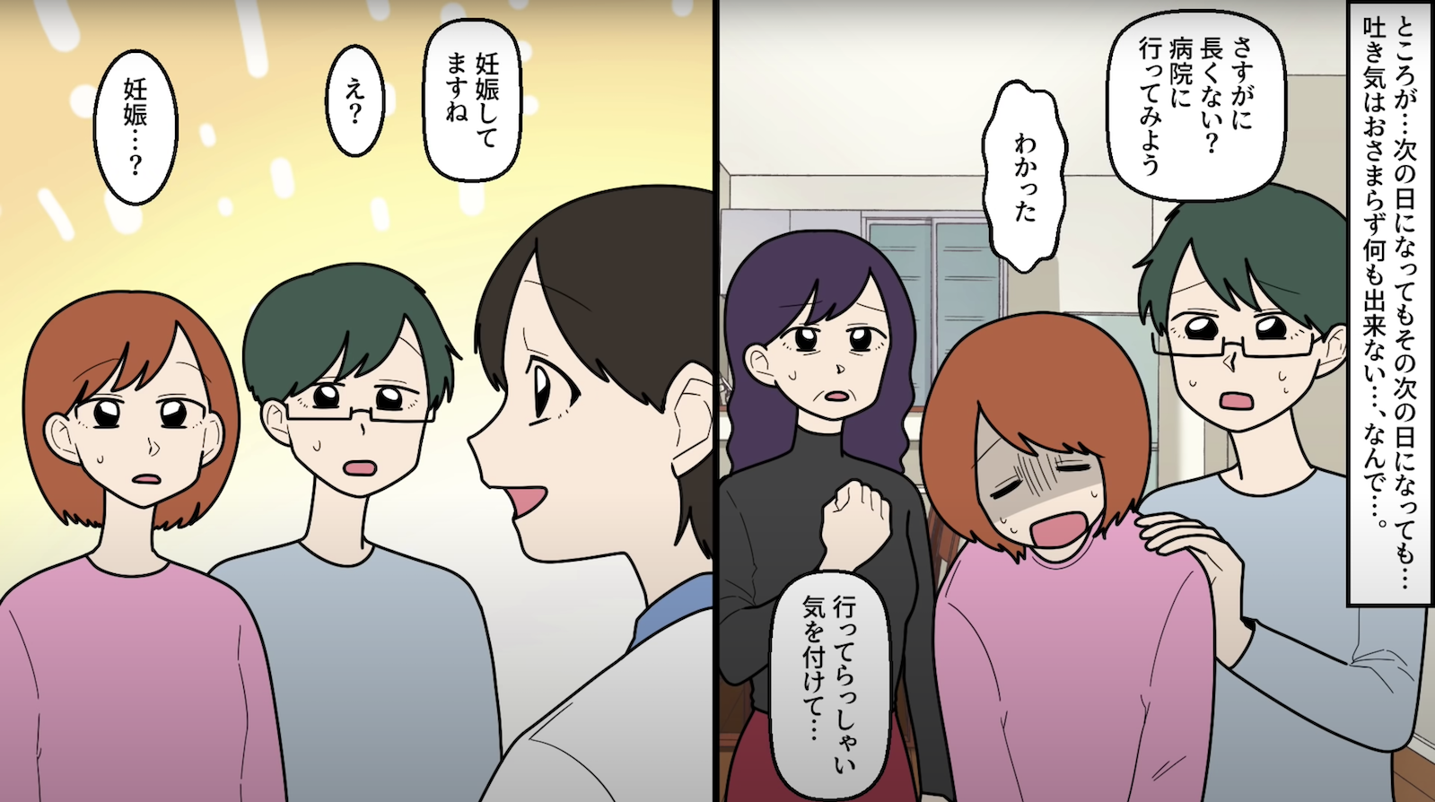 夫「大袈裟だったから心配したよ!でもよかった!悪阻は病気じゃないから大丈夫だね!」