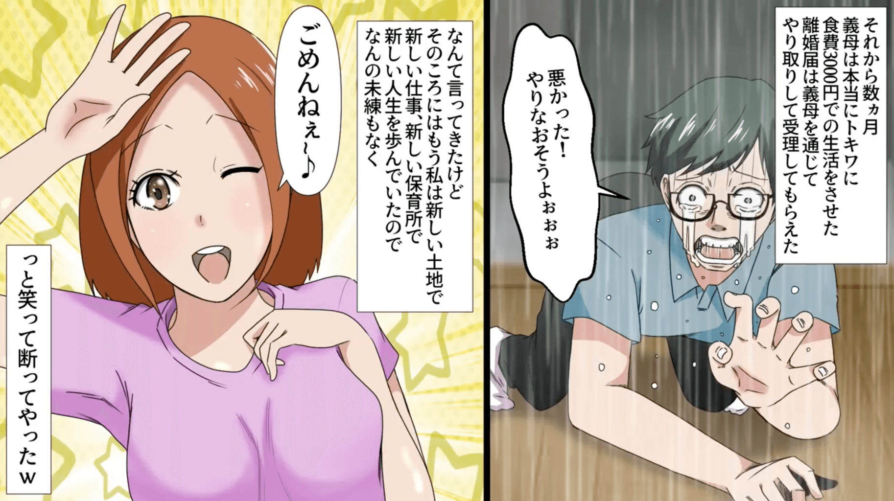 「これからは月5000円でやりくりしろ」仕事を辞めさせられた上に生活費を月5000円しか渡してくれない夫。ギリギリの生活に耐える中、夫が持つ通帳を確認すると【完】 2023年09月03日 18:00 こちらの漫画は完結です(✨次回の漫画も見てね✨)動画で見る(✨YouTubeへ飛びます✨)ナレーションついてるよ〜( ・∇・)完結済みのお話はこちらです(スカッとする話のオススメは下記から) 完結済みのお話はこちらです(衝撃的な体験のオススメは下記から) サクッと読めるショートストーリーはこちら 「スカッとする話」カテゴリの最新記事 タグ :#スカッとする話#生活費#スカッと漫画#エネ夫#金銭感覚 < 前の記事次の記事 > コメント コメントフォーム 名前 コメント 記事の評価 リセット リセット 顔 星 情報を記憶 コメントを投稿する