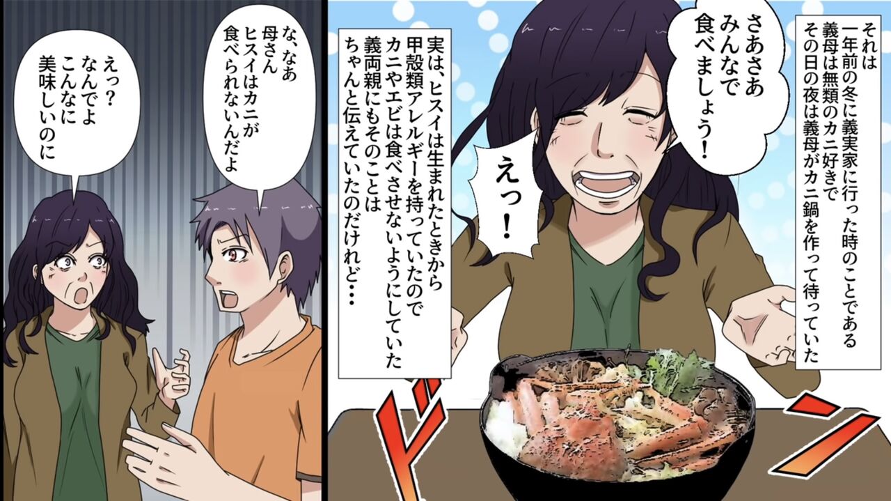 義母「なんでカニが食べれないのよ?」