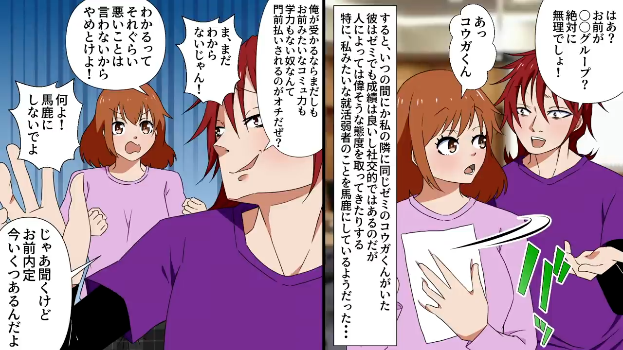 馬鹿にしてくるこの同級生は、成績優秀で外面もいいため内定をかなりもらっている。