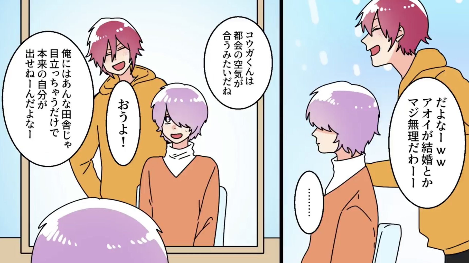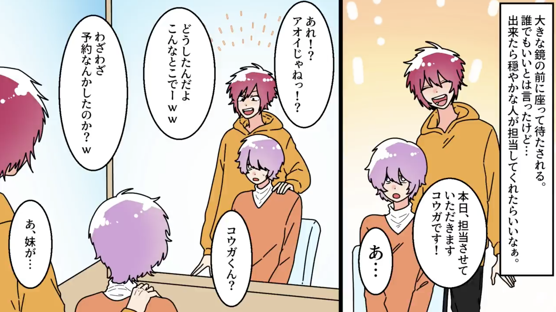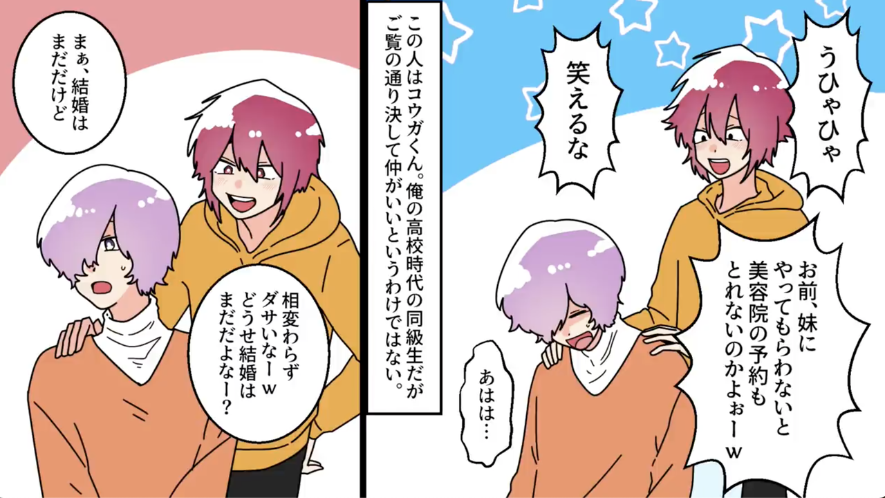 昔俺に悪絡みをしていた同級生が俺の担当スタイリストになる。ずっと悪口を言われていたが俺の彼女が店に入ってくる【1】 2024年01月24日 21:00 【あらすじ】俺はこの度滅多に行かない美容院にきた。この後人に会うため身だしなみを整えるためだ。家族に予約を取ってもらってきたが緊張する。店員「ご指名はございますか?」俺「いえ、特にありません」店員「ではこちらで用意させていただきますね」そうして席に案内させられたが同級生「よろしくお願いします」俺「え?」同級生「あれ?お前」担当になったのは高校時代の同級生だった。しかも俺はこの人が苦手だった。今更引き返せないのでこのまま切ってもらうことにした。 次回に続く(✨次回の漫画も見てね✨)↓ 完結済みのお話はこちらです(スカッとする話のオススメは下記から) 完結済みのお話はこちらです(衝撃的な体験のオススメは下記から) サクッと読めるショートストーリーはこちら ▶︎Twitterをフォローして更新を最速で通知!▶︎Instagramをフォローしてサクサク読み! カテゴリなしの他の記事 < 前の記事次の記事 > コメント コメントフォーム 名前 コメント 記事の評価 リセット リセット 顔 星 情報を記憶 コメントを投稿する