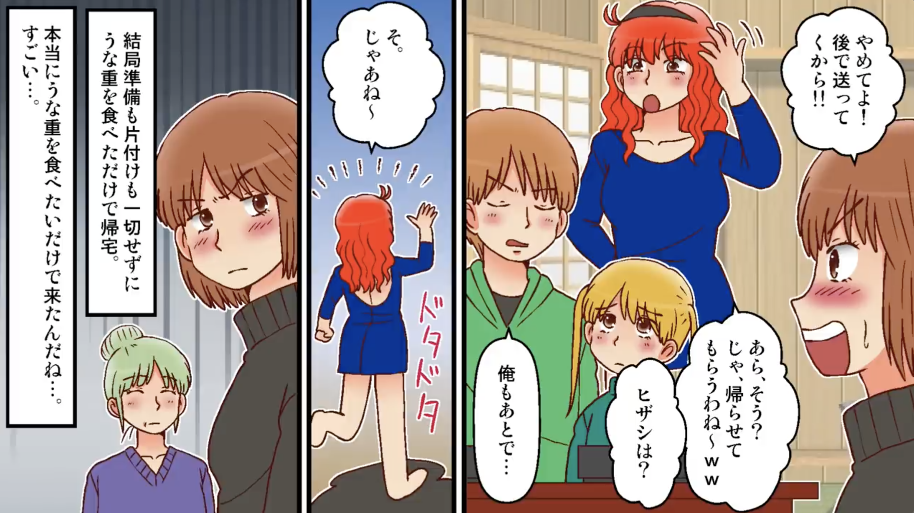 父の葬儀後に受付金目当てで顔を見せにきた兄嫁。私たちを赤の他人発言したので母がキレた結果【4話】 2024年02月14日 18:00 物語の最初はこちら 前回の話読むならこちら 次回に続く(✨次回の漫画も見てね✨)↓ 完結済みのお話はこちらです(スカッとする話のオススメは下記から) 完結済みのお話はこちらです(衝撃的な体験のオススメは下記から) サクッと読めるショートストーリーはこちら ▶︎Twitterをフォローして更新を最速で通知!▶︎Instagramをフォローしてサクサク読み! 「スカッとする話」カテゴリの最新記事 タグ :#スカッとする話#漫画#マンガ < 前の記事次の記事 > コメント コメント一覧 (2) 1. 名無しさん 2024年02月14日 20:41 葬儀の受付金ていうのは受付の手間賃的なもの? 0 モモコ がしました 2. 名無しさん 2024年02月14日 22:12 次の話見れないやん 0 モモコ がしました コメントフォーム 名前 コメント 記事の評価 リセット リセット 顔 星 情報を記憶 コメントを投稿する