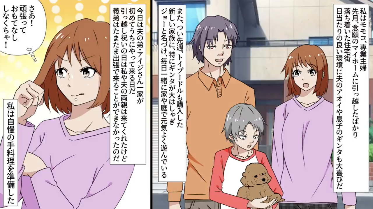 私は夫と息子の三人暮らしだがこの度マイホームを購入して愛犬を家族に迎え入れ四人家族となった。