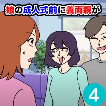 娘の方をふと見ると真っ青な顔をして目に涙を浮かべていたので思わず抱き締めた。「もう帰ってくれ!」夫は義両親にそう言い放つと力づくで家の外へ出した。このお話を始めから読む↓ 前回のお話はこちら↓ といった出来事があったものの、成人式当日まで義両親の凸はなく平 ...